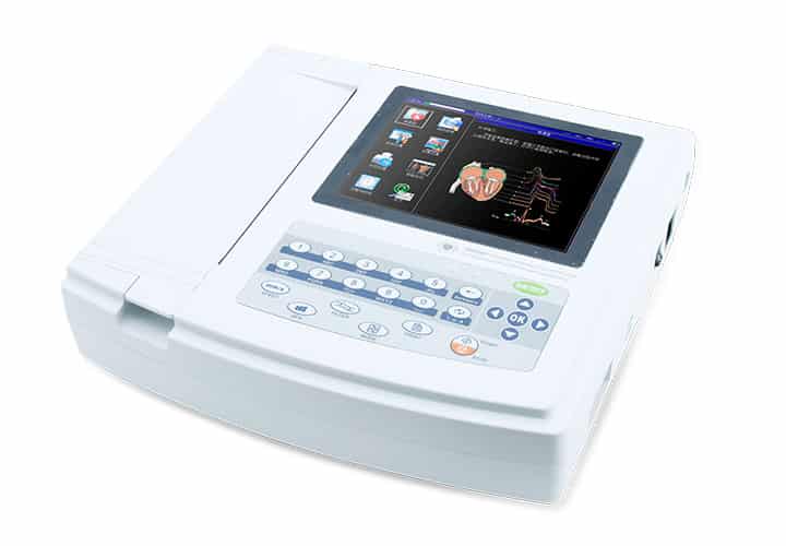 Aparat wyposażony w 8” dotykowy wyświetlacz, rejestrujący status wykonywanego badania oraz fale EKG. Sprawdzenie fal pozwala zaoszczędzić papier oraz zaobserwować błędy w podłączeniu ssawek. Dzięki jednoczesnym 12 kanałowym pomiarze, cyfrowym procesorze sygnałowym aparat 600G otrzymuje wyższej jakości wykresy EKG wykorzystując przy tym filtry AC, EMG oraz filtru bazowego. Aparat umożliwia jednoczesne wyświetlanie 3/6/12 kanałów EKG, stan druku, czułość, szybkość i filtr. Szeroki zakres form druku z głównego panelu. Aparat posiada funkcje auto-analizy i auto-interpretacji na końcu pomiaru. Szeroki zakres form druku z głównego panelu. Aparat posiada funkcje auto-analizy i auto-interpretacji na końcu pomiaru. Wbudowana bateria litowo-polimerowa umożliwia wykonanie 150 badań. Pamięć aparatu umożliwia zapis ponad 1000 przypadków, ułatwiając lekarzowi przywołanie badania. Zawiera szerokie możliwości zmiany szybkości druku: 5mm/s, 6.25mm/s ,10mm/s, 12.5mm/s, 25mm/s, 50mm/s. Aparat posiada opcję instalacji oprogramowania synchronizacyjnego do stanowiska komputerowego.